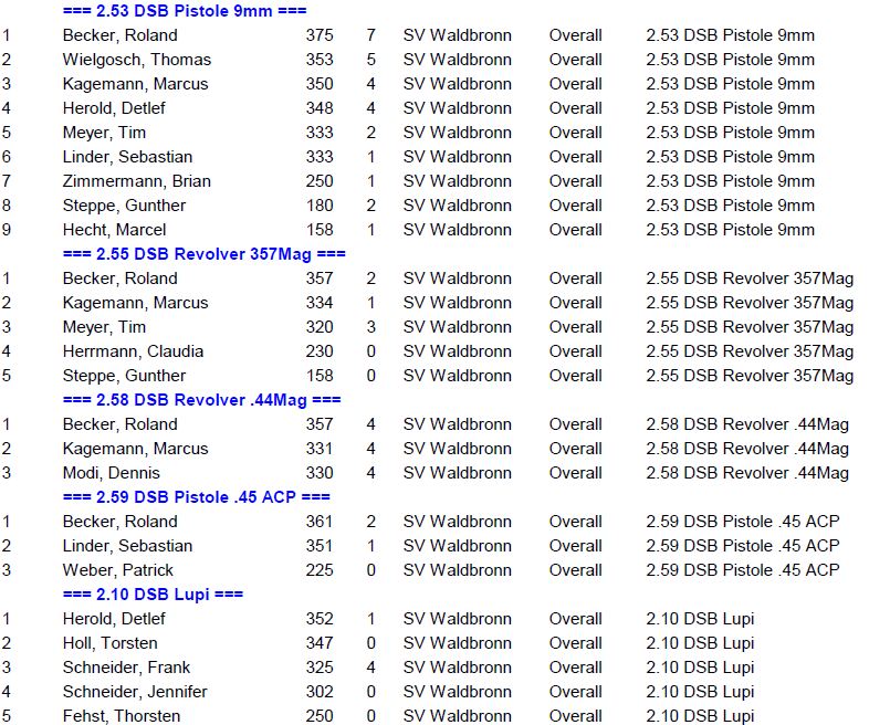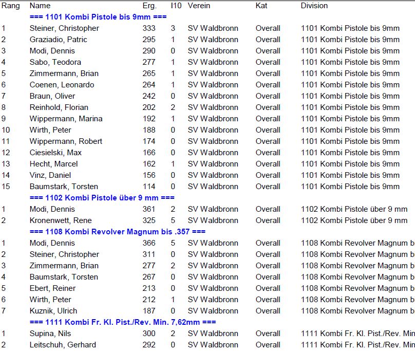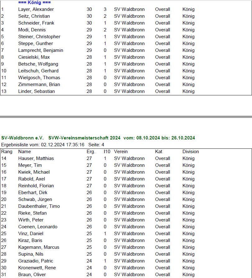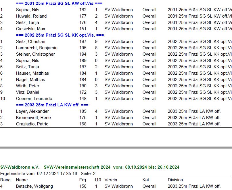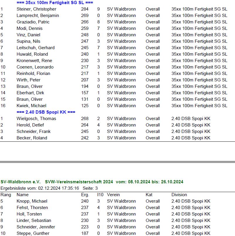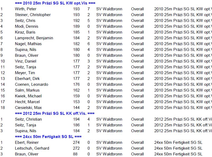 Ergebnisse SVW Wettkämpfe